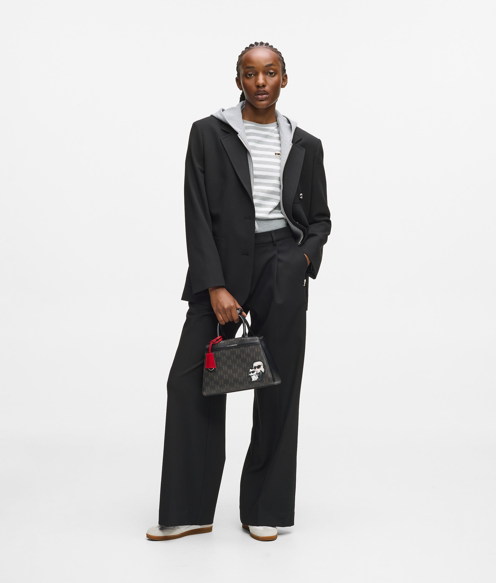 A sumptuous all-over KL Monogram design is embellished with playful artwork and a contrast tag charm in this bold yet elegant tote bag. Top handles and a detachable strap offer versatile styling.
