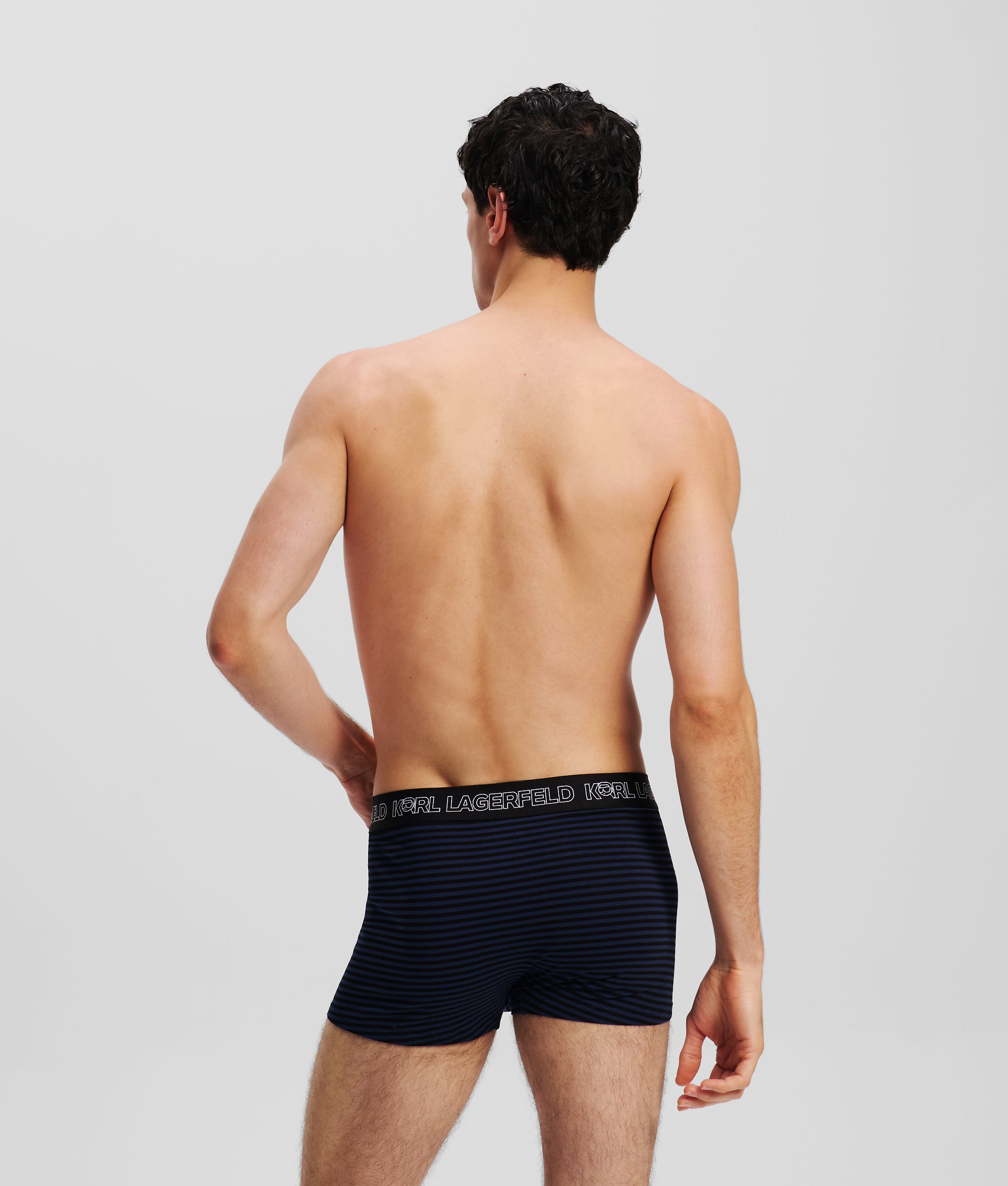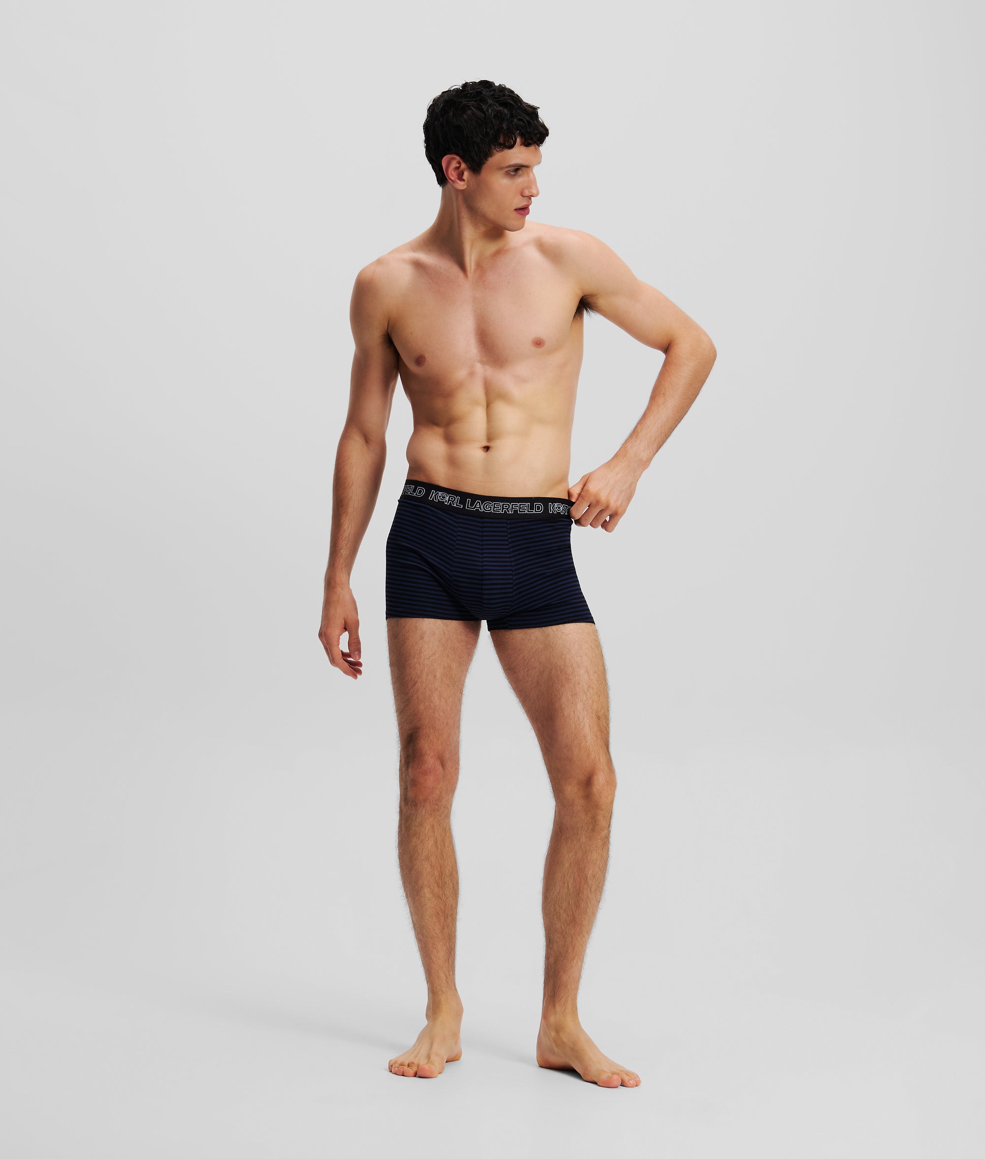This set of trunks showcases three distinct designs. including an all-over IKON print. a stylish stripe. and a timeless solid hue. The elasticated waistband ensures comfort. while the logo tab adds subtle branding.?