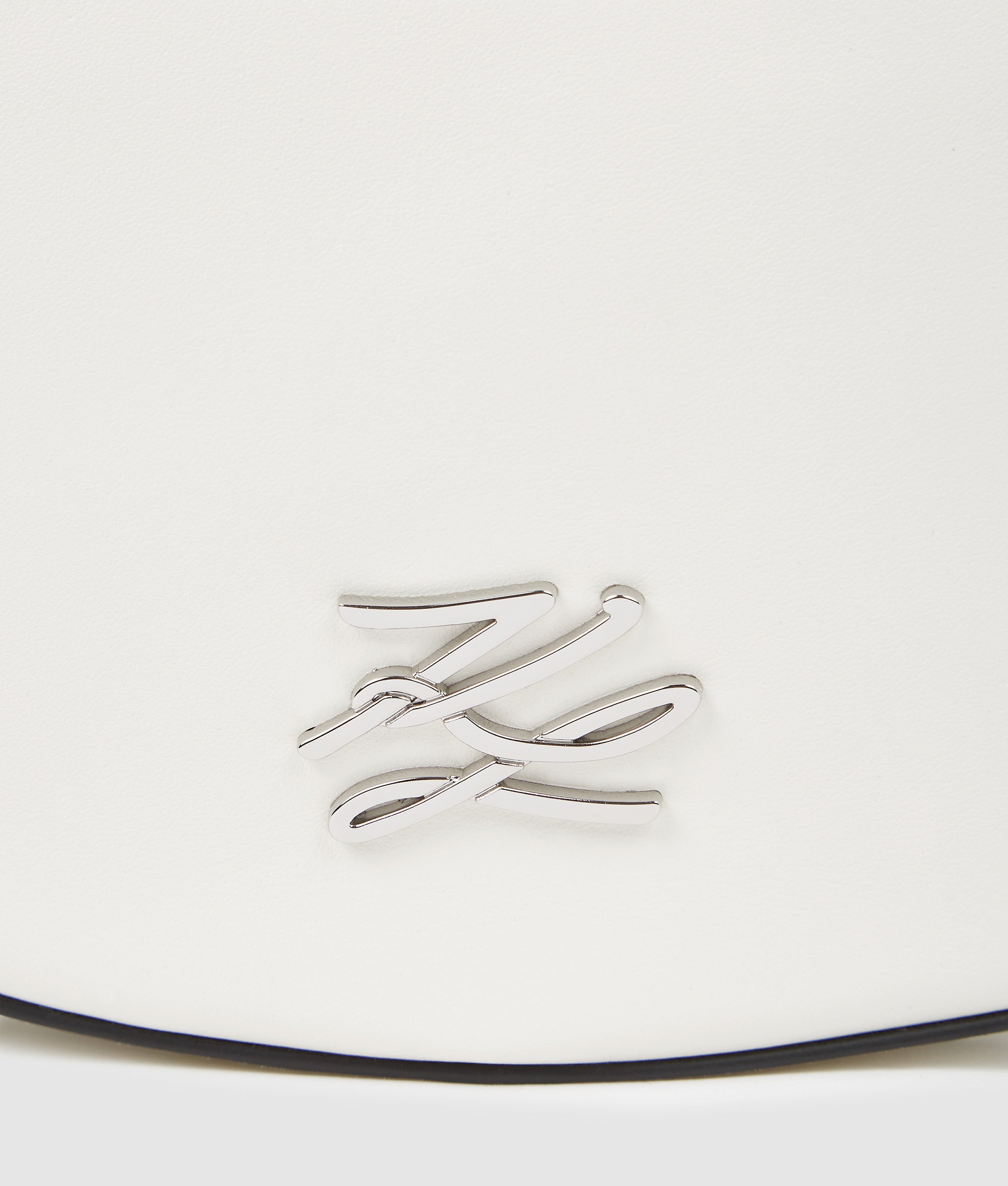 A standout moon silhouette defines this slim shoulder bag. perfect for adding individuality to any look. The chain-embellished strap brings rock-chic edge. while the Karl Autograph anchors the piece.