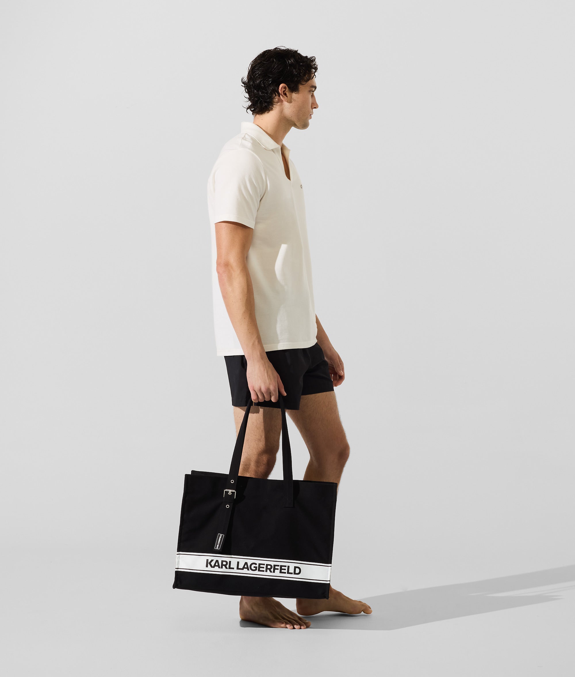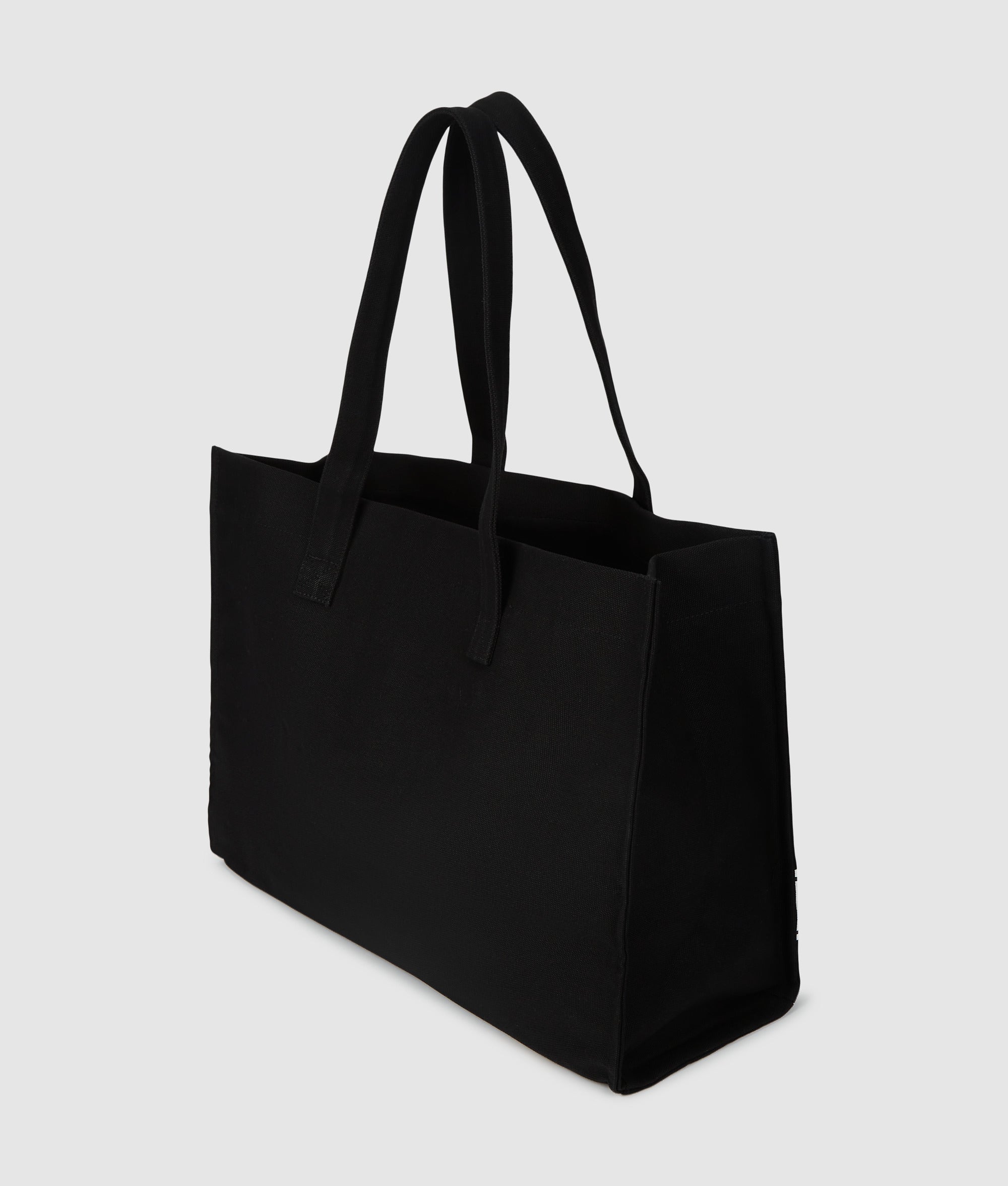 Sun-soaked days meet structured style in this beach bag. Its sharp silhouette. crafted in cotton canvas. invites effortless style. while twin handles and a bold logo add signature polish.