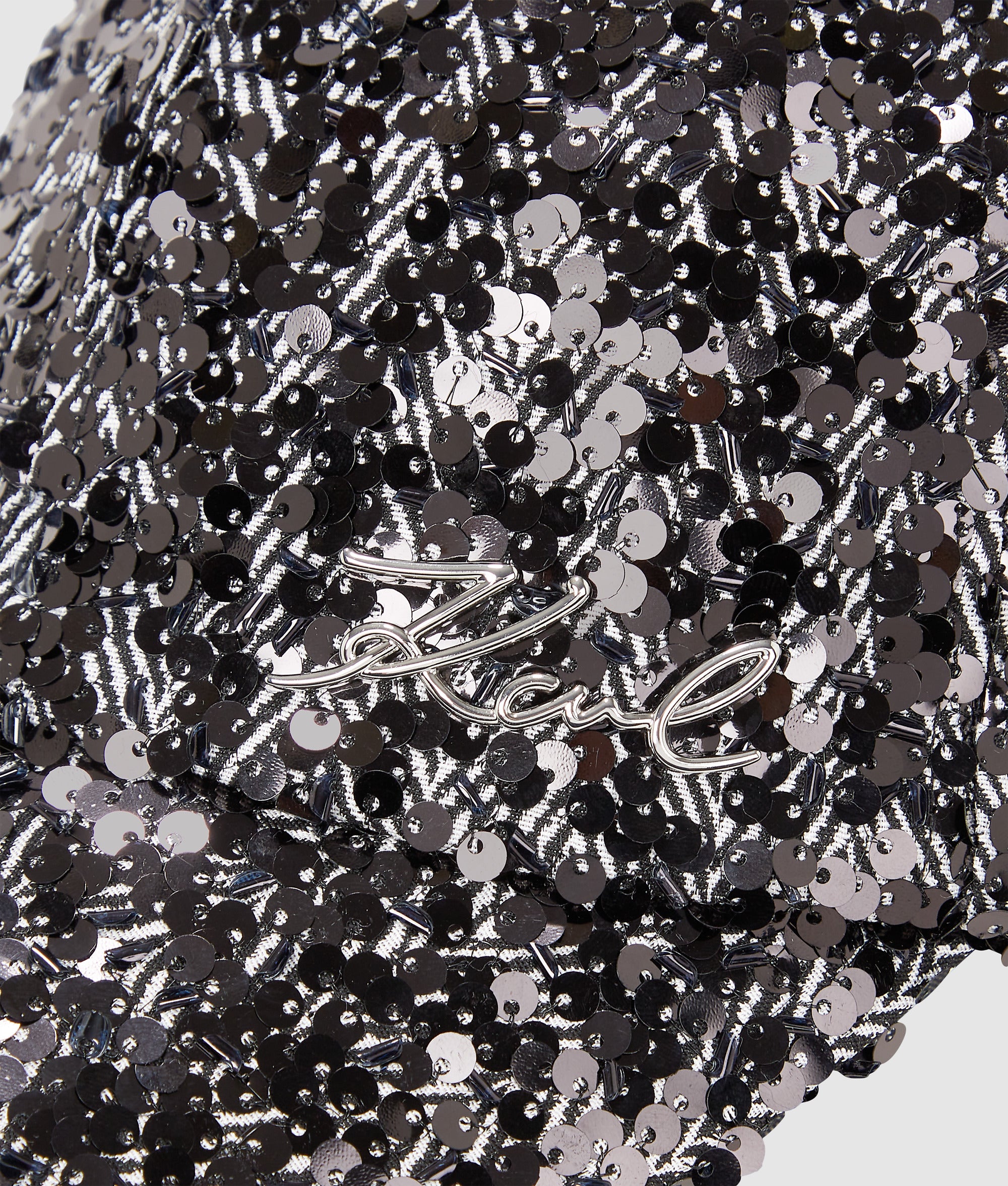 All-over sequin embellishment and Signature hardware transform this classic baseball cap into a statement piece.?