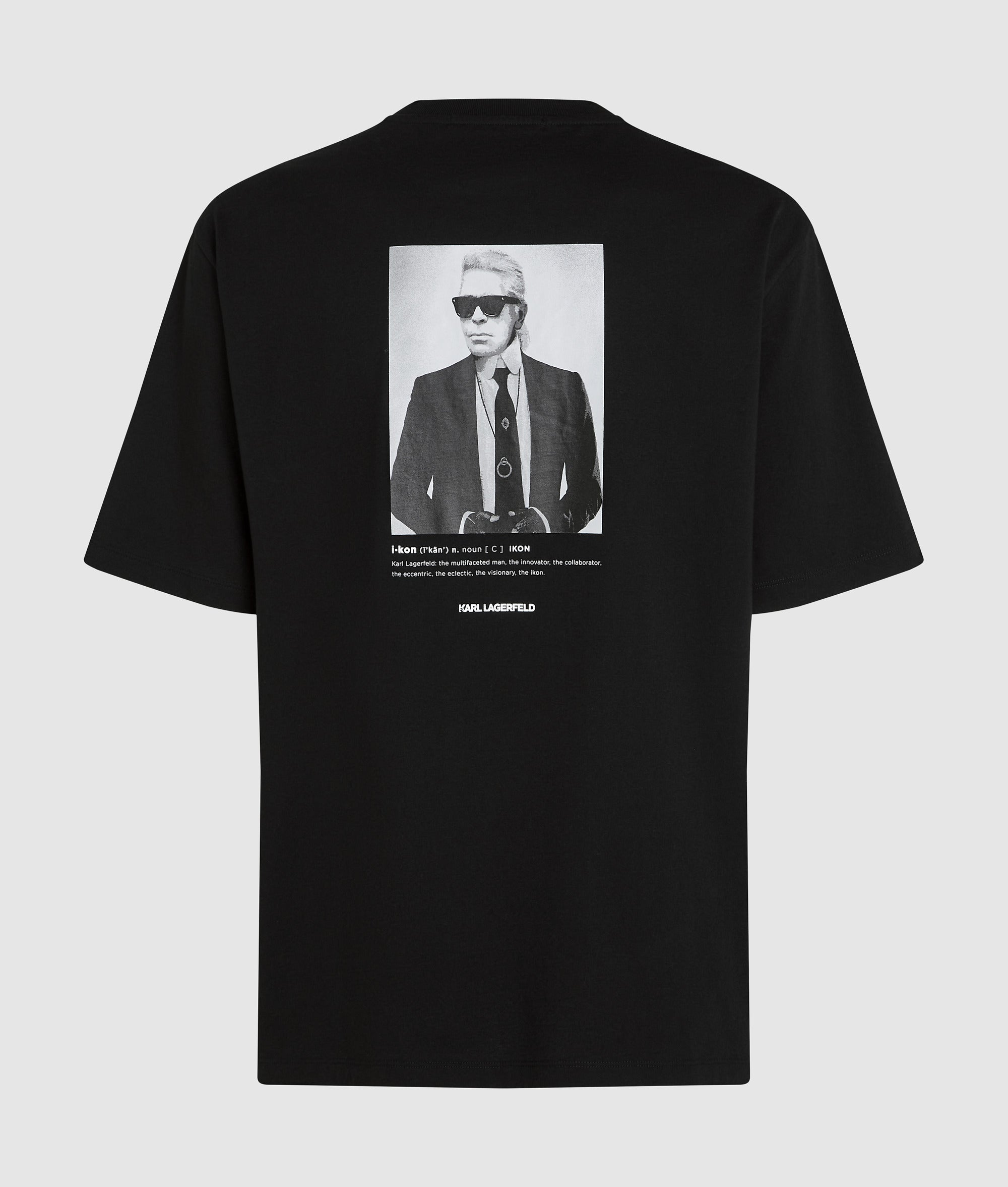 A casual favorite elevated by a fashion icon. This crew-neck T-shirt is understated at the front and bold at the back with artwork of the legendary Karl Lagerfeld.?