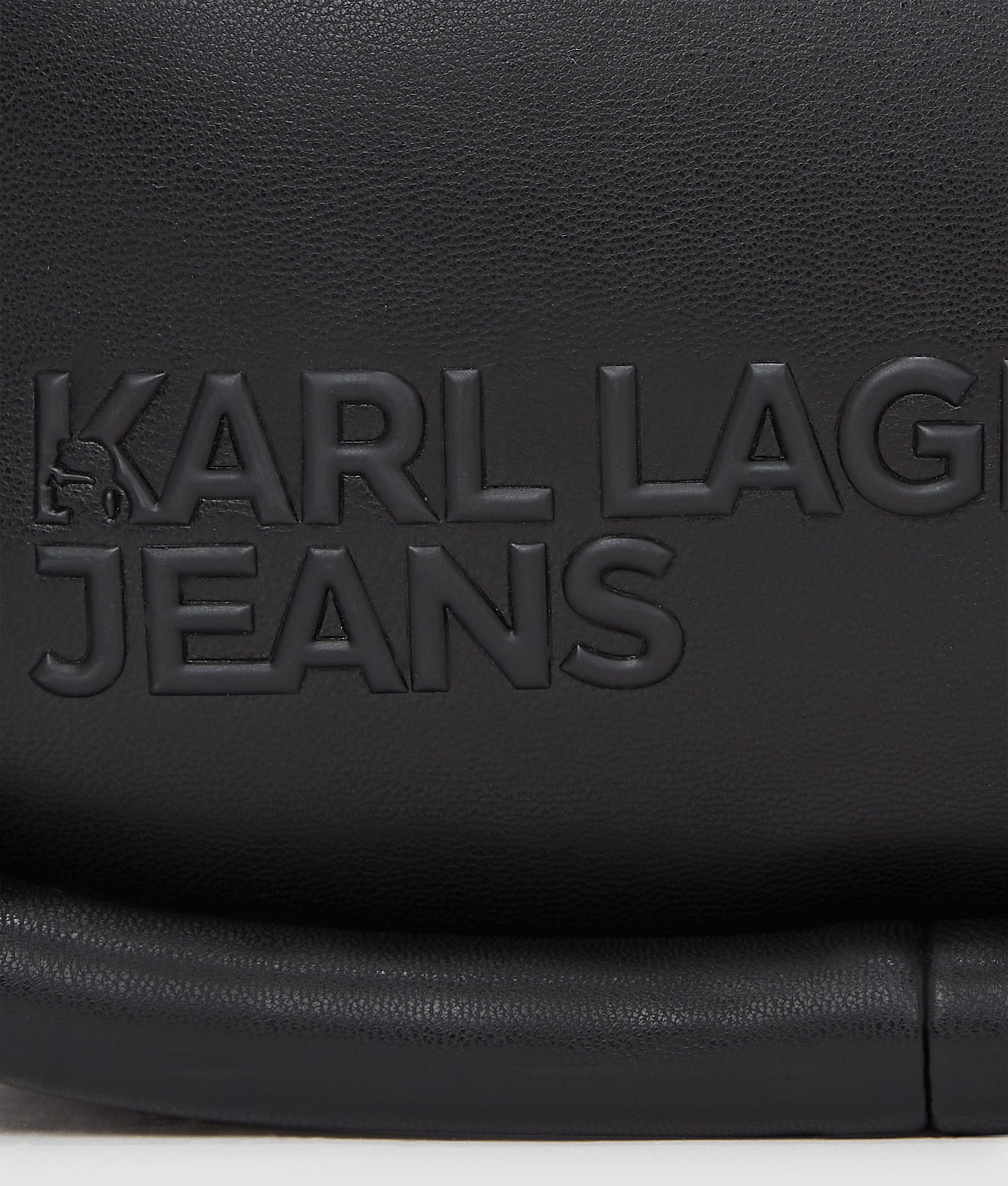 A playful. padded construction with piping makes this crossbody bag a standout accessory. A zip closure keeps essentials at-hand. while the adjustable webbing strap with bold KARL LAGERFELD JEANS logo adds versatility and an urban edge.