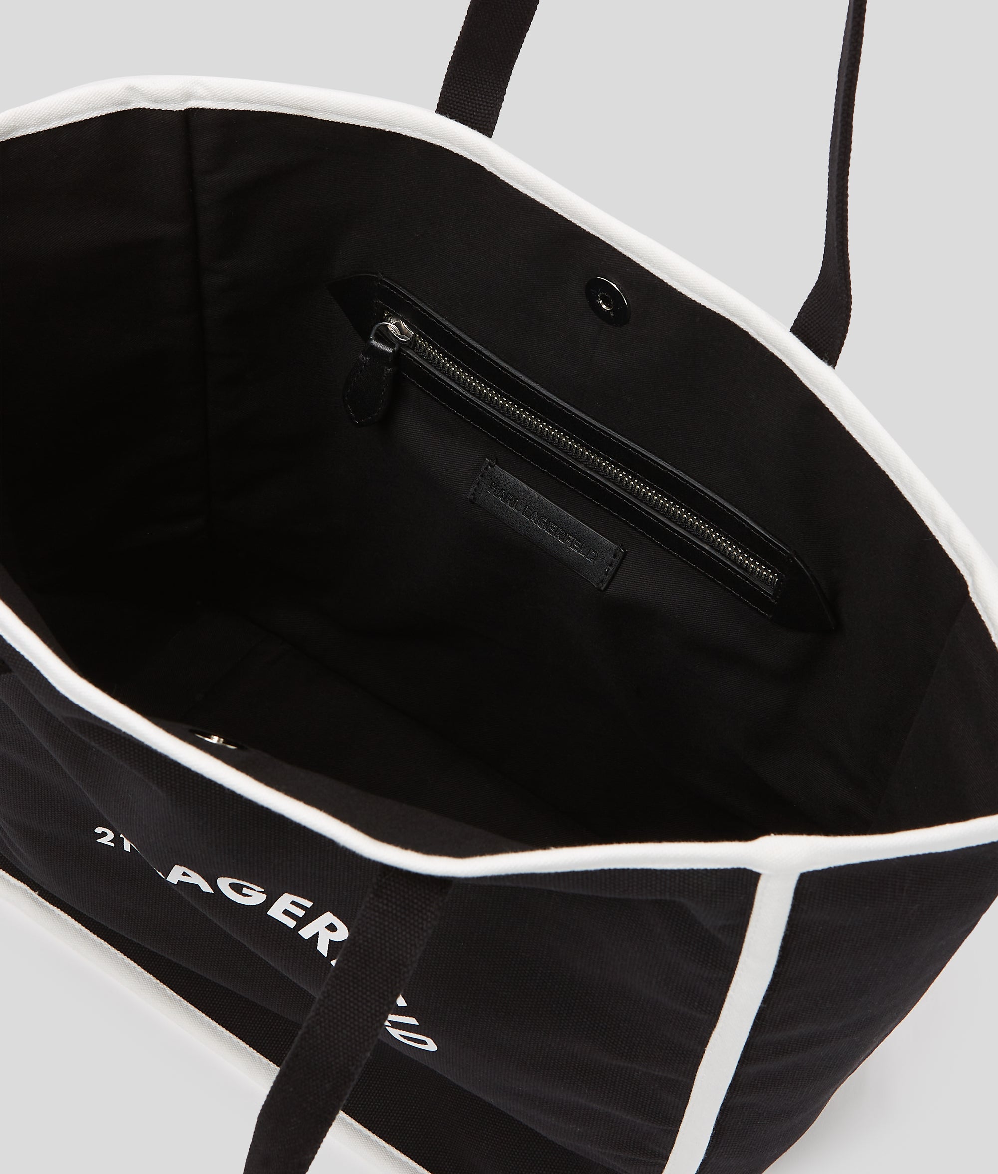 The perfect companion for everyday adventures. this roomy cotton shopper effortlessly accommodates all your essentials. Featuring a button closure and twin top handles. it showcases a bold Rue St-Guillaume logo and striking contrast detailing. merging practicality with flair.