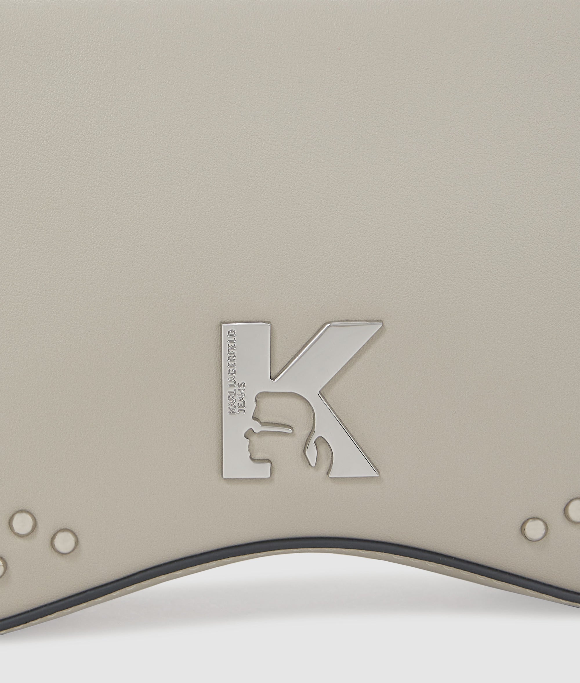 Add edge to any outfit with this statement shoulder bag. inspired by Karl Lagerfeld’s iconic sunglasses. An adjustable strap ensures a comfortable fit. while bold studs and K-logo hardware bring a rock-chic feel.