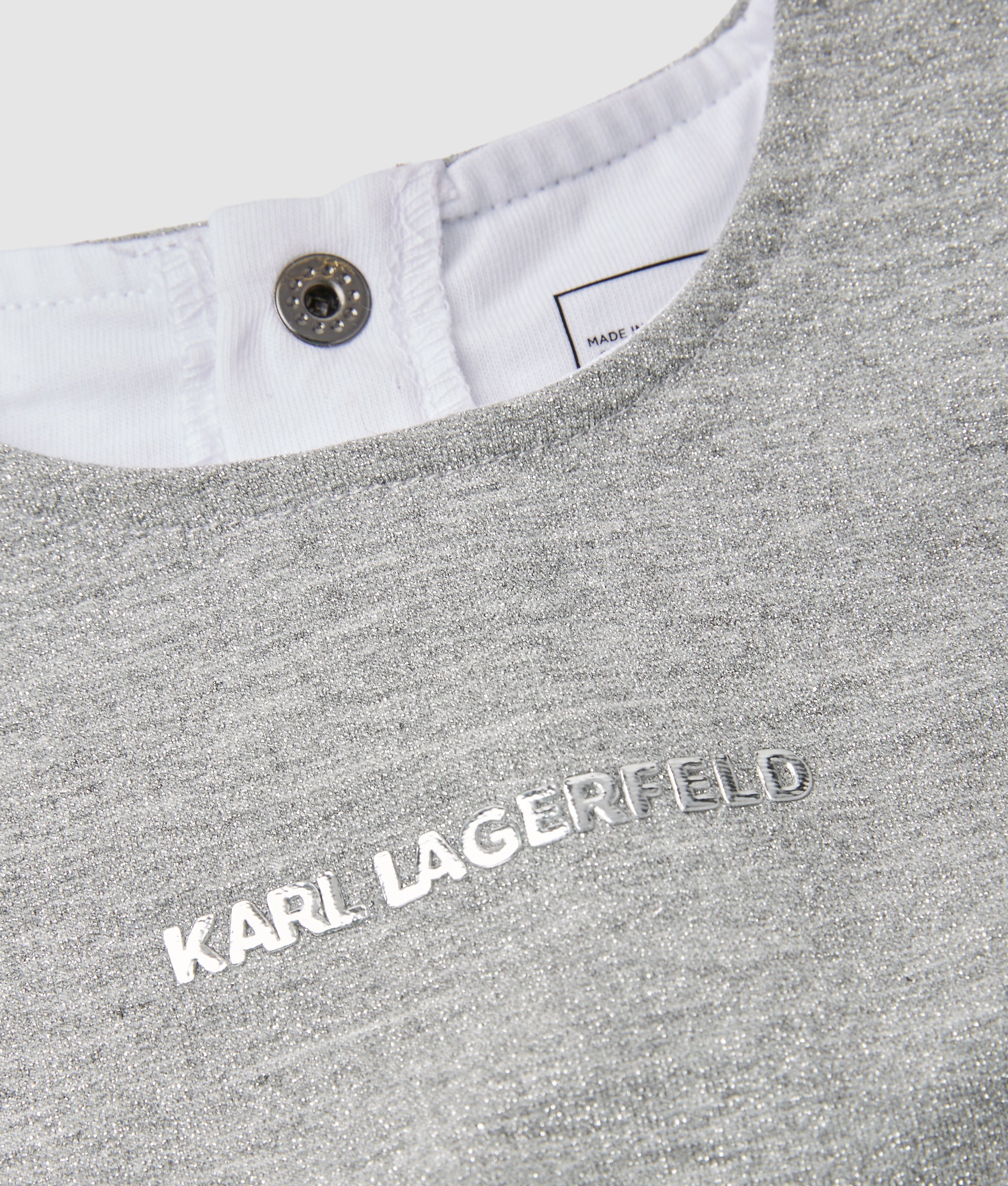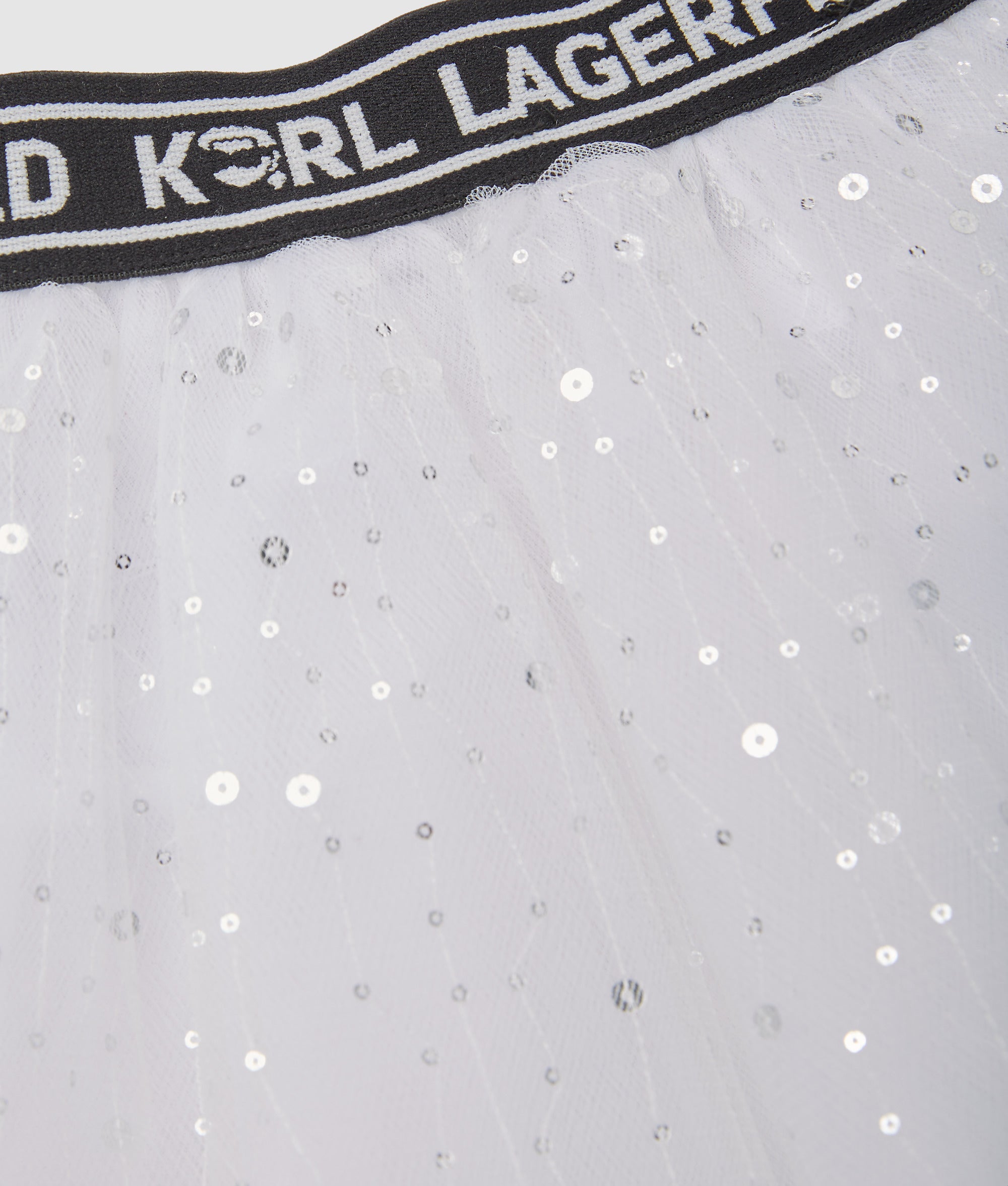 This two-piece gift set pairs a soft sweatshirt with a shimmering mesh skirt. finished with an elastic logo waistband for easy comfort.?