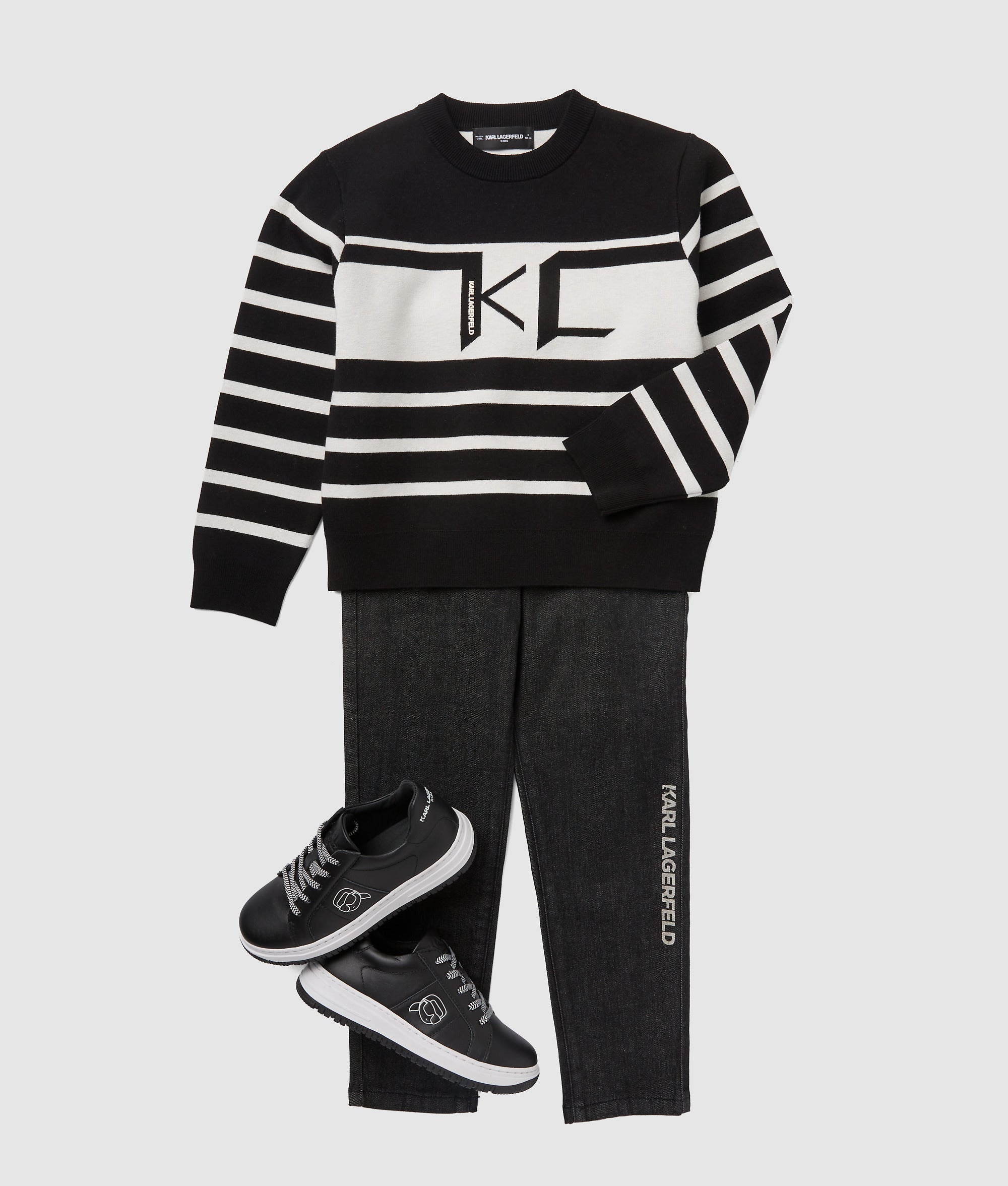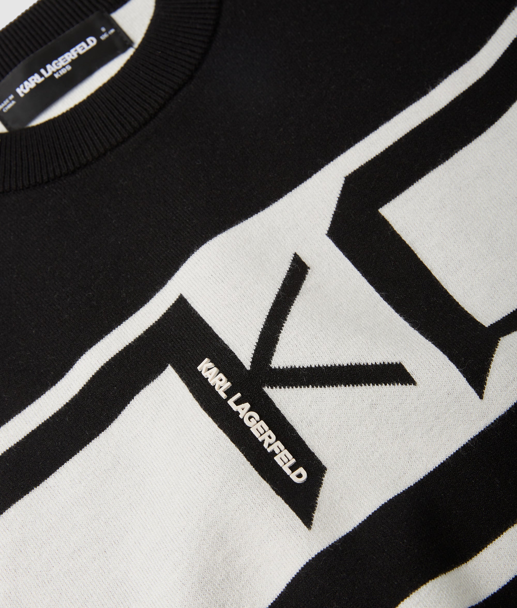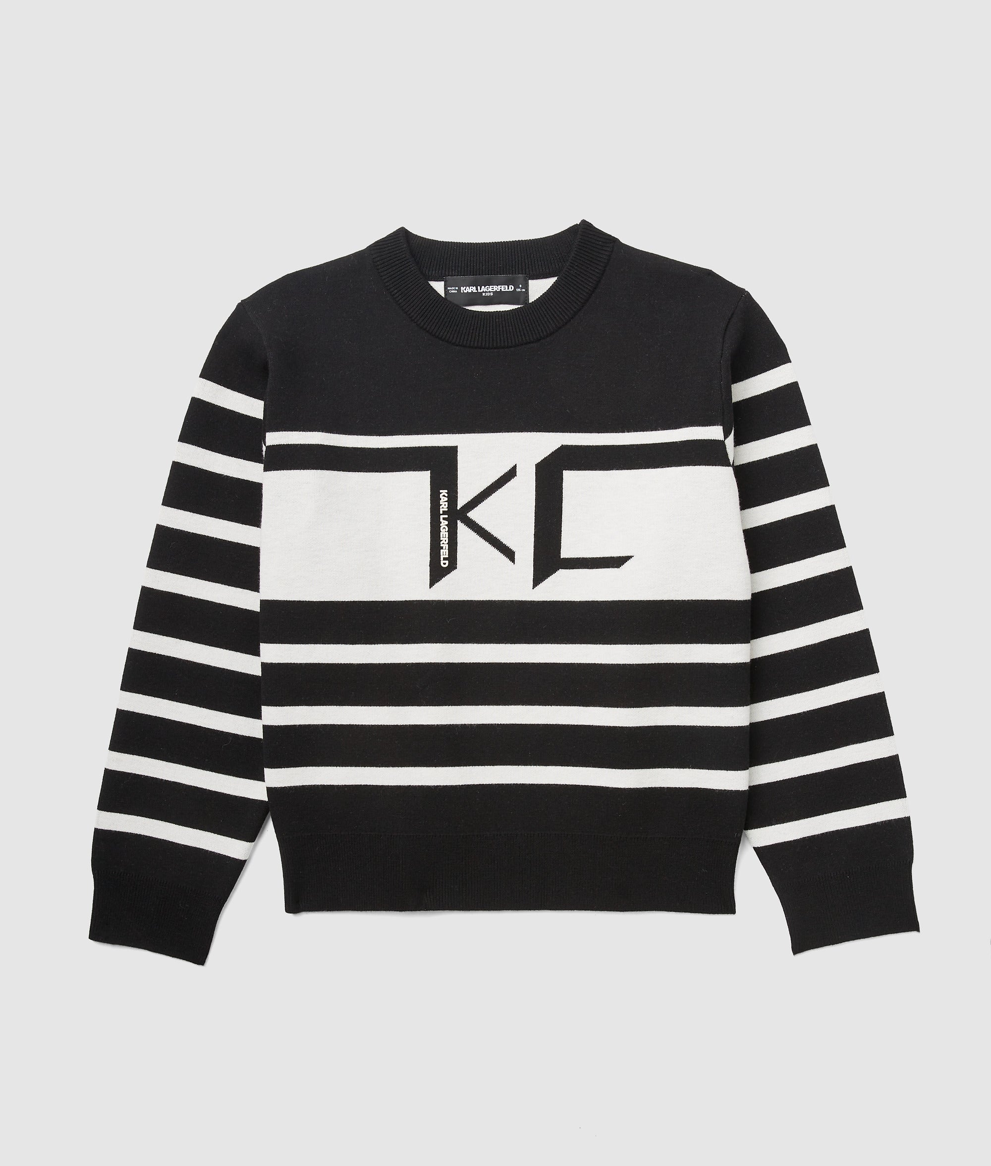 A statement in stripes. This soft knitted sweater features distinctive Monogram artwork at the chest ?? made to stand out. layer up. and last the season.