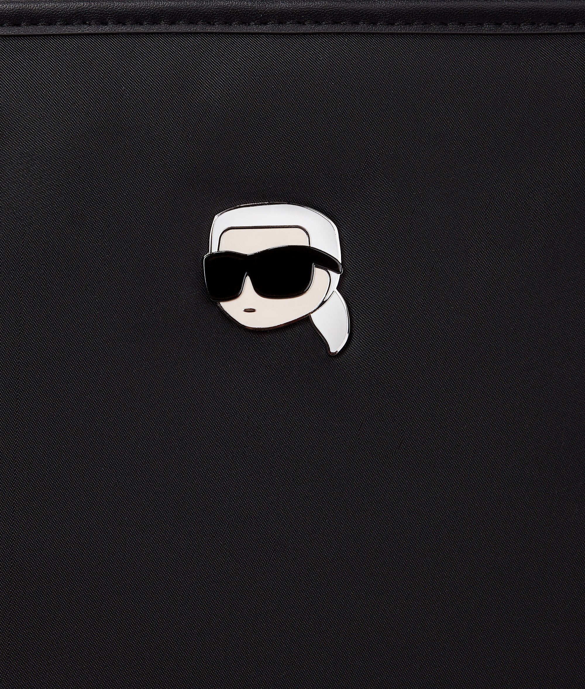 The Ikon tote bag combines playful details with practical design. It features a laptop-friendly interior and secure zip closure. while twin handles make carrying effortless. The Ikon Karl pin and tie details add a unique touch.