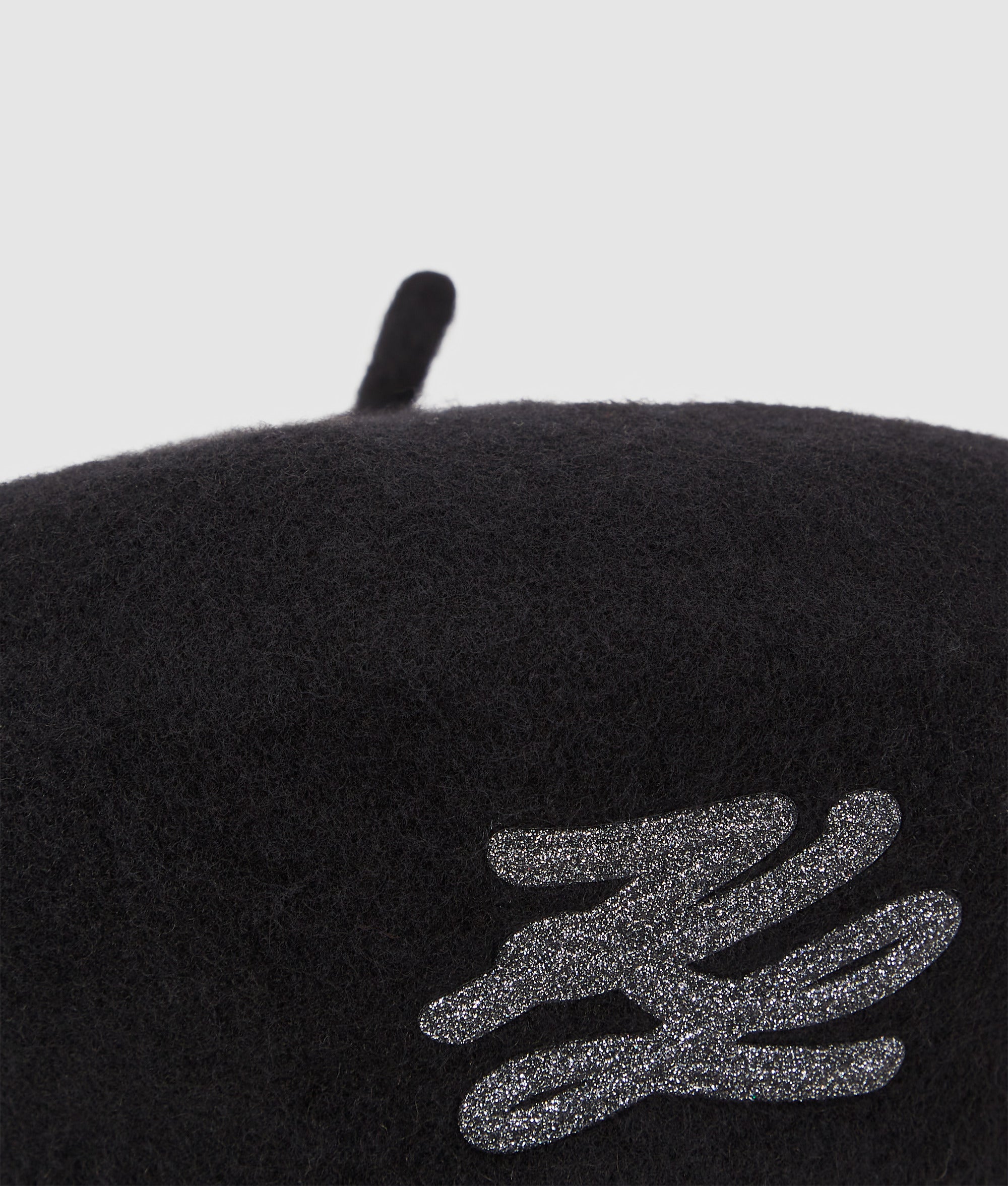 Channel Parisian chic with this wool beret. finished with a soft crown. fitted headband. and glittering Autograph logo.