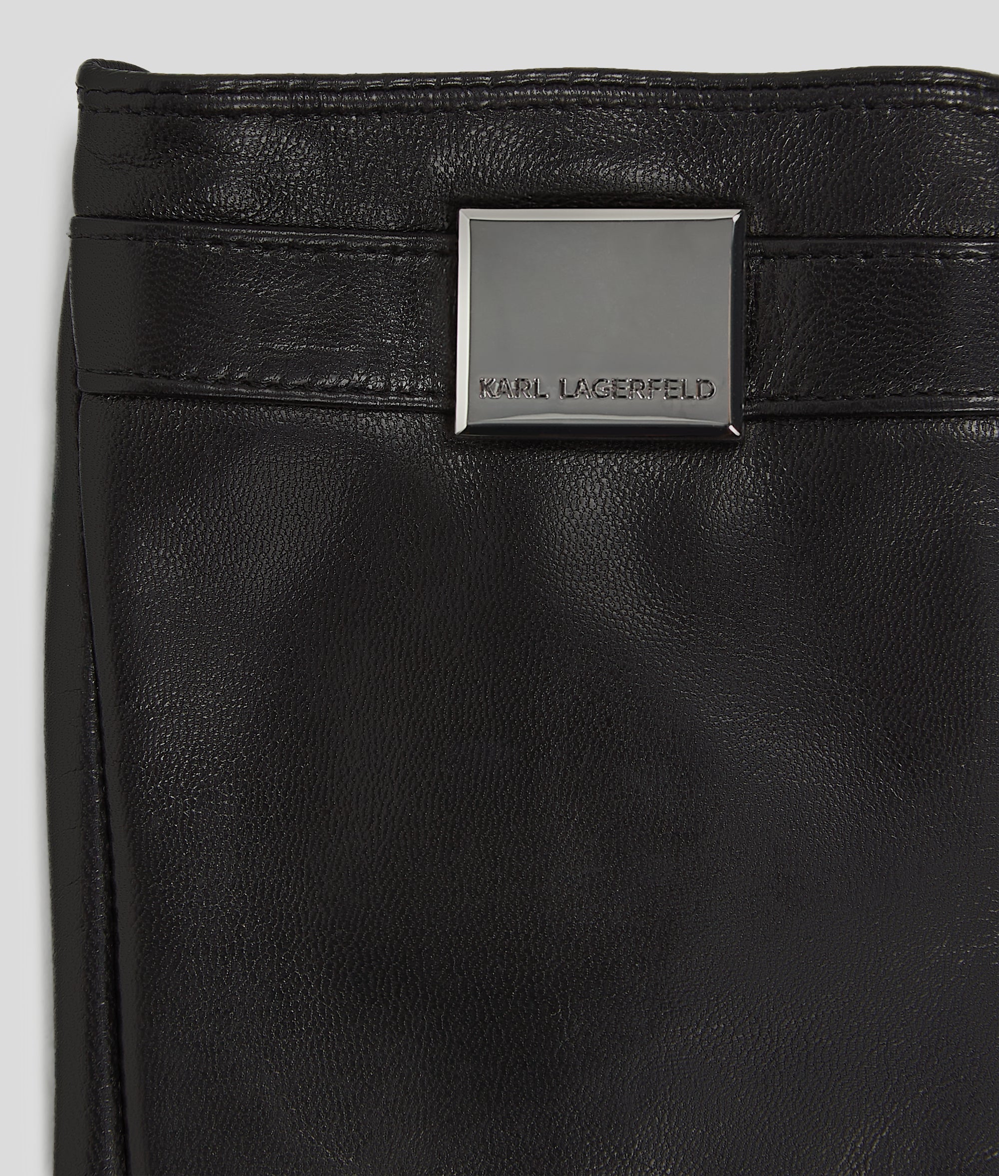 Elevate your accessory game with these fingerless gloves. Crafted from luxuriously soft leather. they feature elasticated wrist cuffs for a snug fit. Square metal accents proudly display the KARL LAGERFELD logo. adding a touch of sophistication.