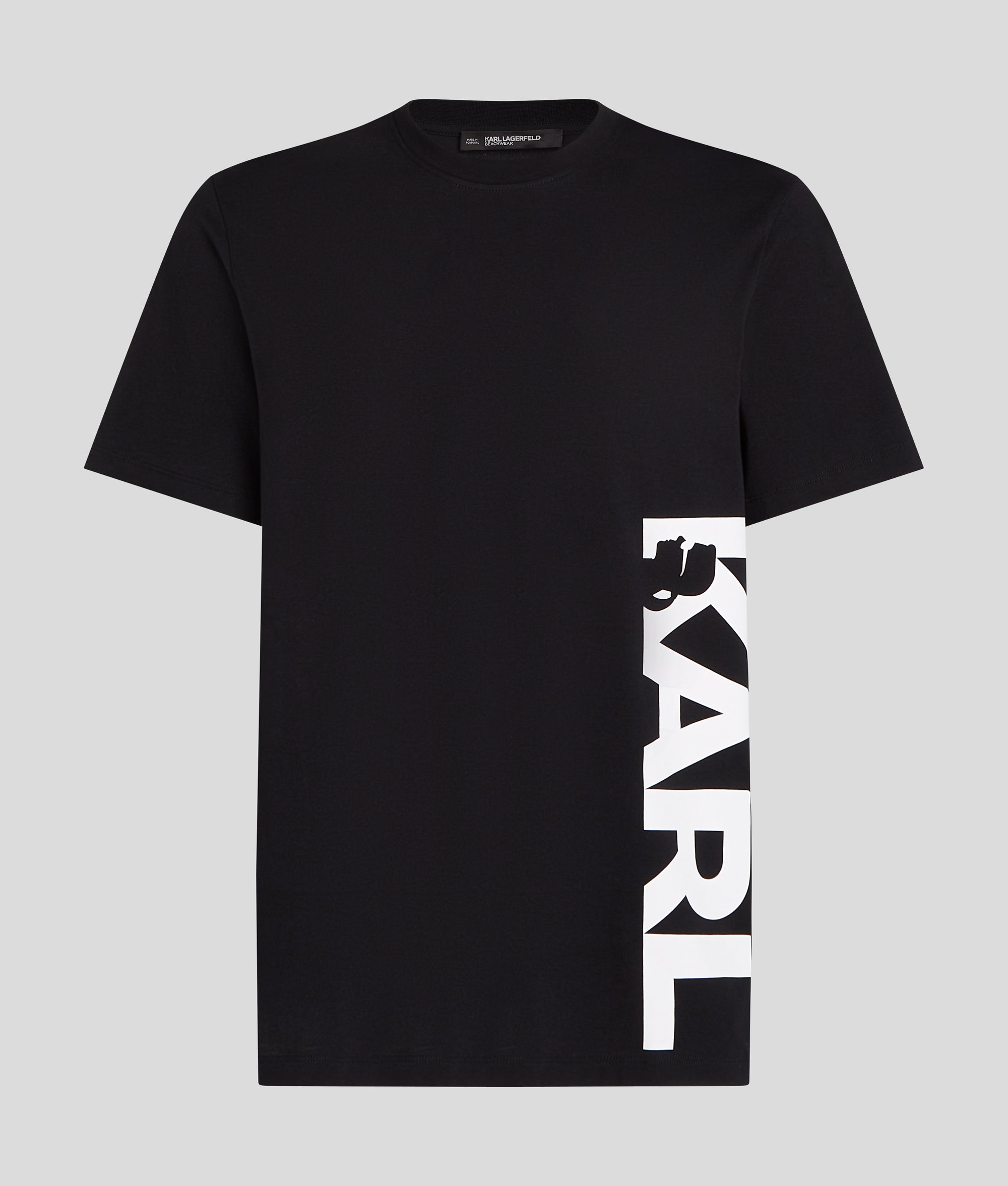 A perfect blend of comfort and style. this beachwear T-shirt features a ribbed crew neck and short sleeves. making it ideal for sunny days. The vertical KARL logo adds a distinctive touch. effortlessly elevating casual beach vibes.