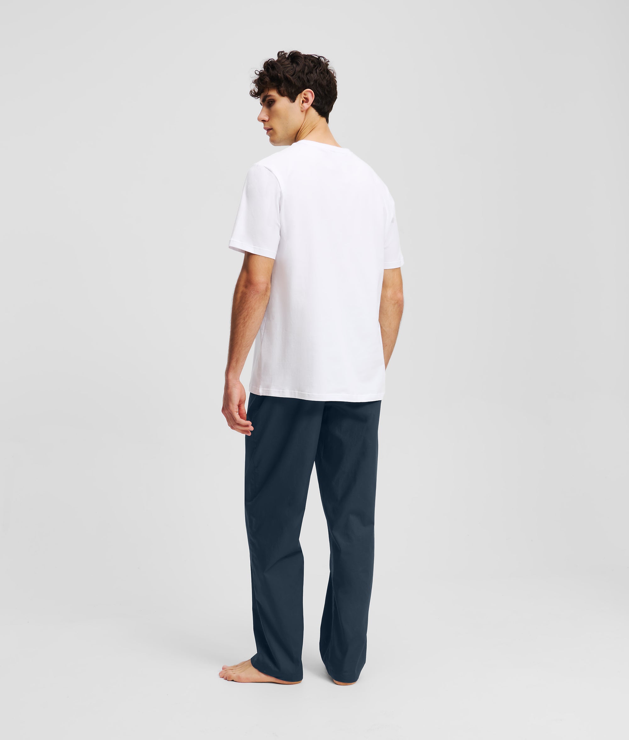 Comfort meets style in this two-piece pajama set. perfect for relaxing evenings. The crew-neck T-shirt showcases a striking KARL LAGERFELD logo. while the pajama pants feature an elasticated waistband for a snug fit.?