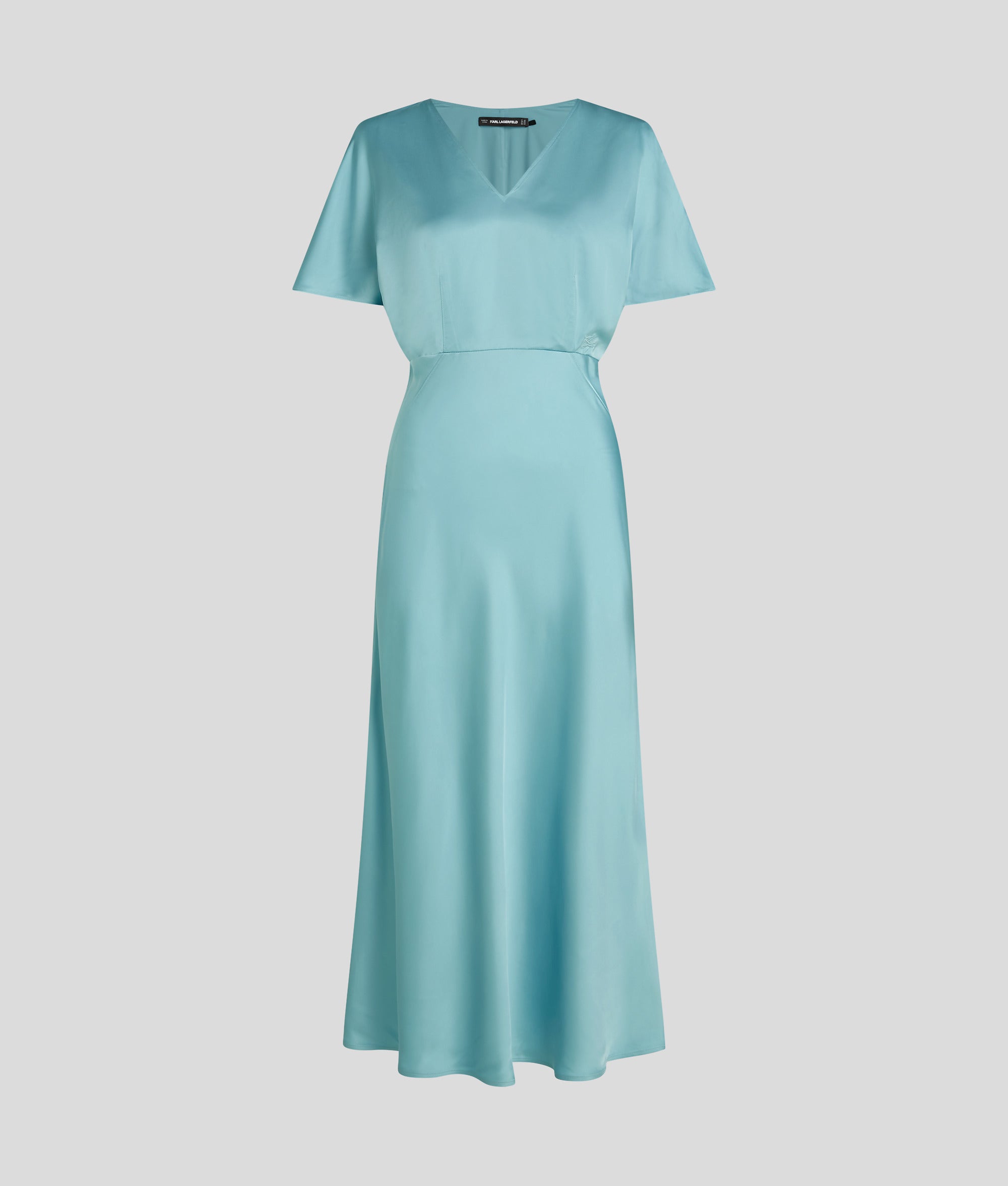 Exude timeless elegance in this sumptuous satin dress. Its fluid. feminine midi-length silhouette offers graceful movement. perfect for special occasions or chic everyday wear.?
