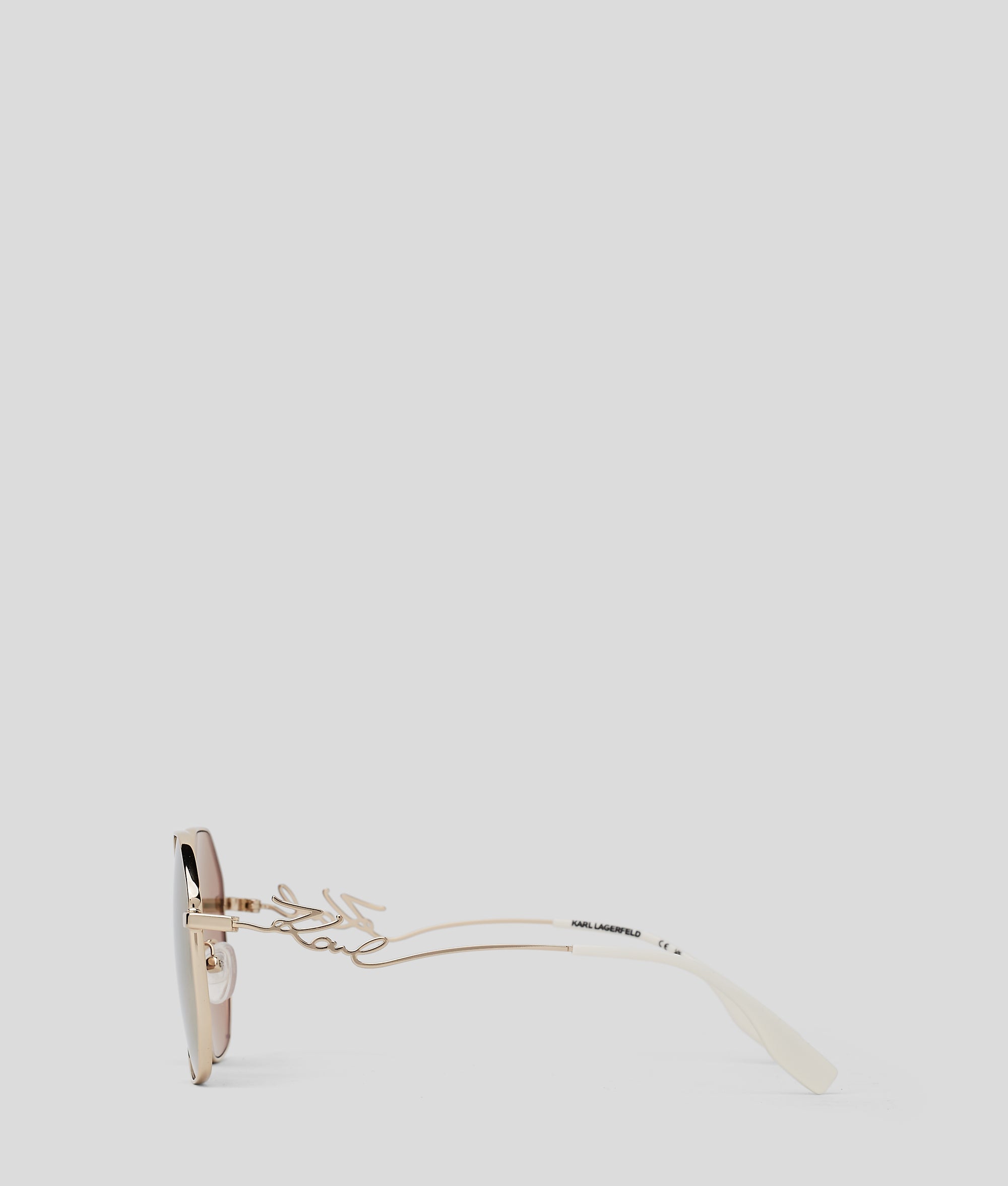 Sophisticated yet effortlessly cool. these sunglasses feature ultra-slim. octagonal frames paired with dark lenses for a striking look. Comfortable nose pads ensure a perfect fit. while the KARL Signature logo adds a touch of iconic flair.